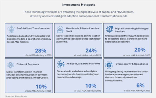 After a cautious period over the last 12-18 months, investor confidence is rebounding across the ANZ region, with a wave of deals focused on digital transformation and operational resilience. The accelerated adoption of SaaS, cloud transformation, generative AI, automation, cybersecurity, and advanced analytics has made these verticals magnets for capital and M&A interest. In today’s environment, businesses are doubling down on productivity, back-office simplification, customer experience, and data-driven innovation. These themes are defining the new mid-market growth story in ANZ.